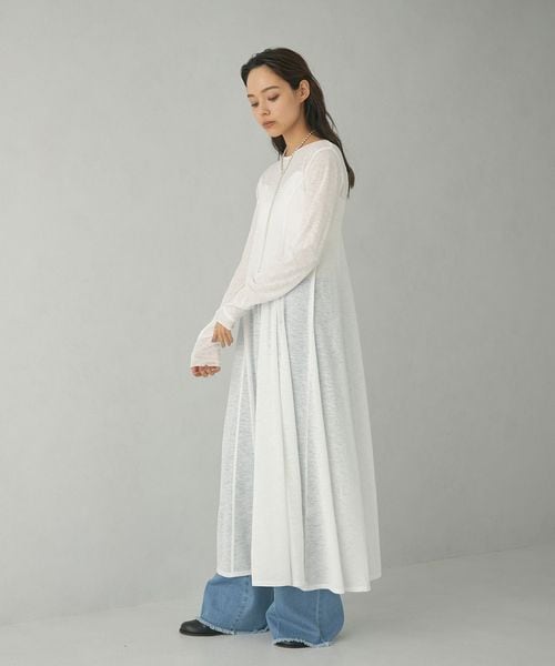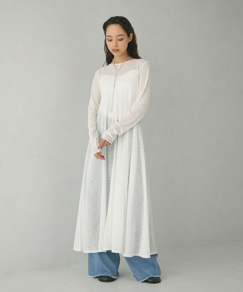 <EMMEL REFINES>EM ロングスリーブ シアー フレア ワンピース