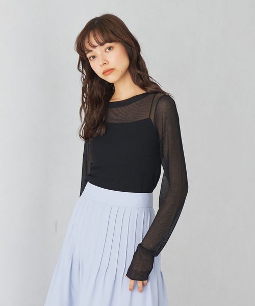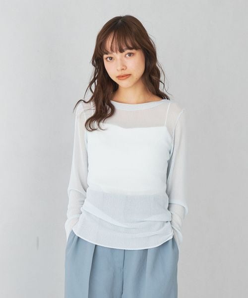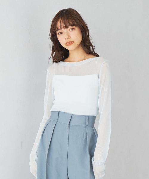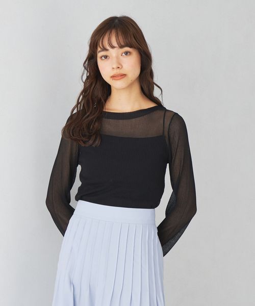 さらっとしたタッチのシアーニット。ロングシーズン着用できるハイゲージのリブ編みです。