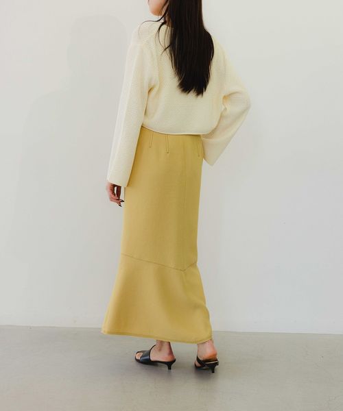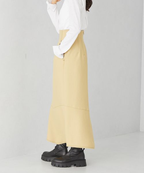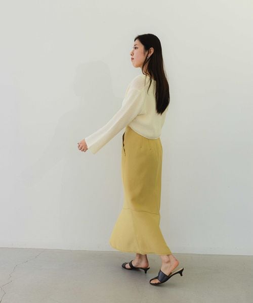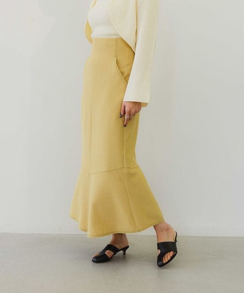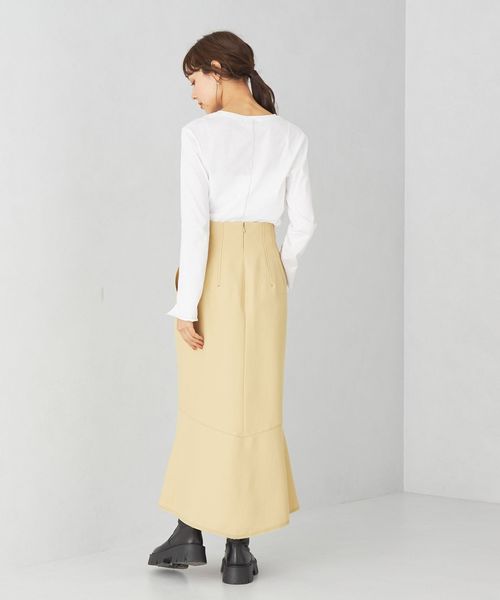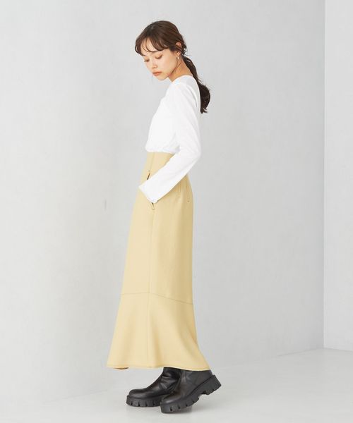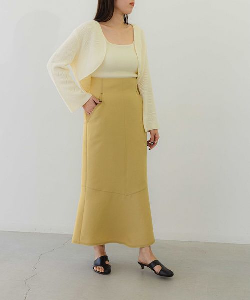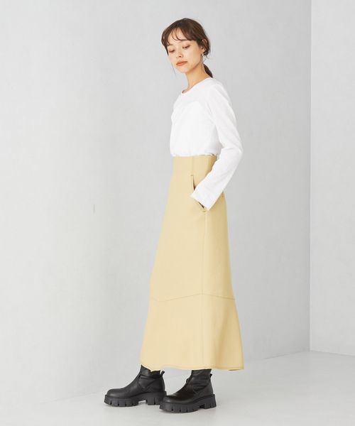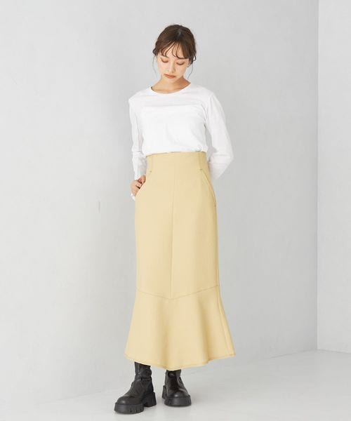タイト過ぎずに着やすいIラインシルエットのスカート。切り替え下で少しフレアを入れてニュアンスのある印象に仕上げています。
