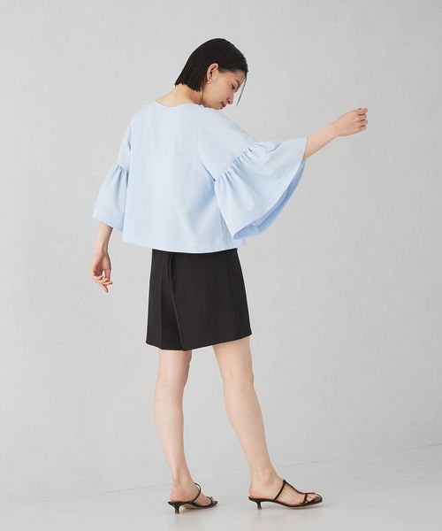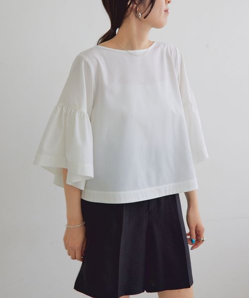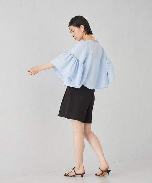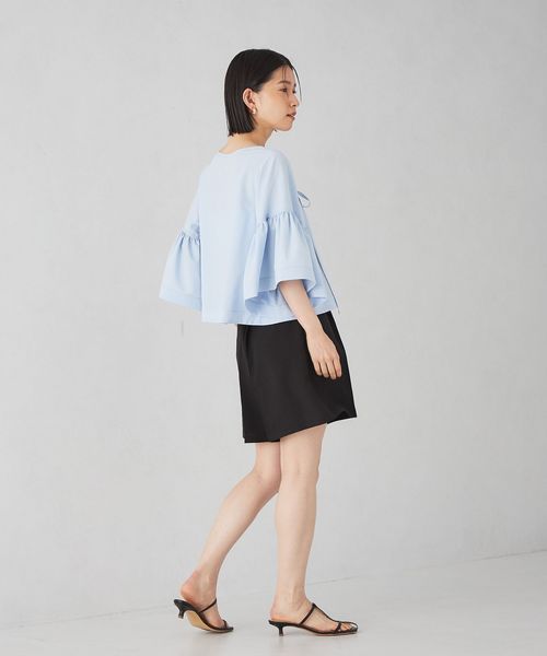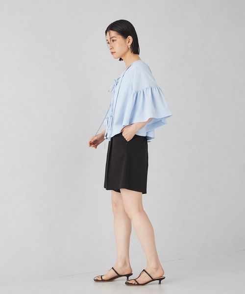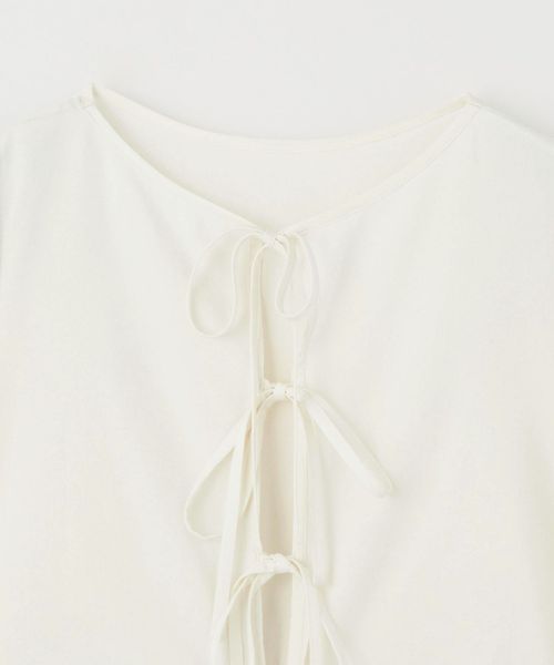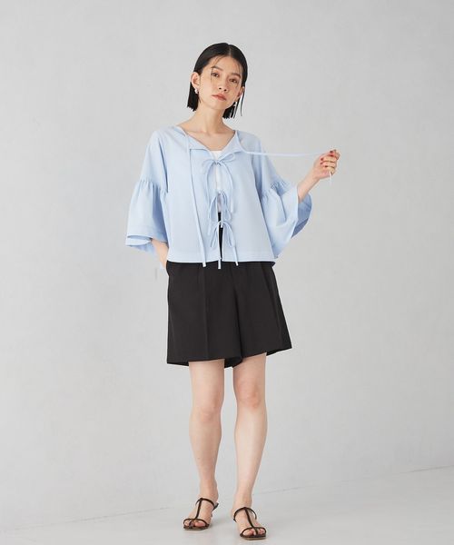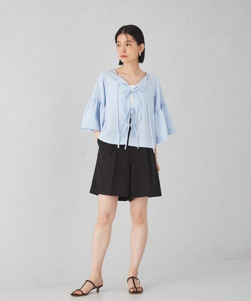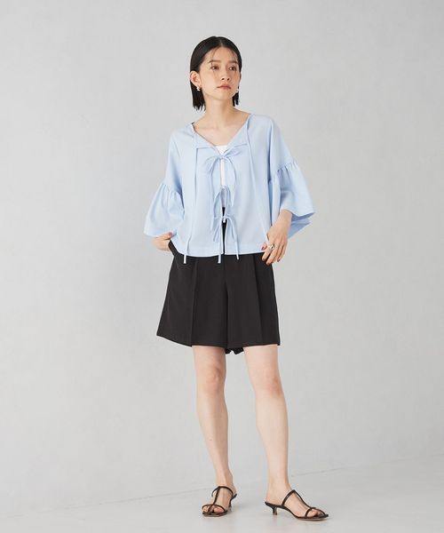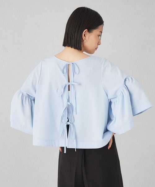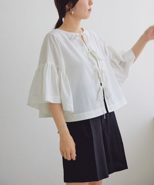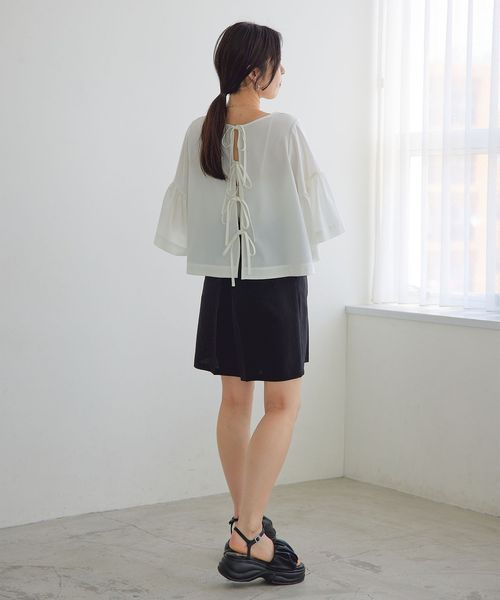 リボンディテールが可愛いブラウスは前後2WAYで着用可能。