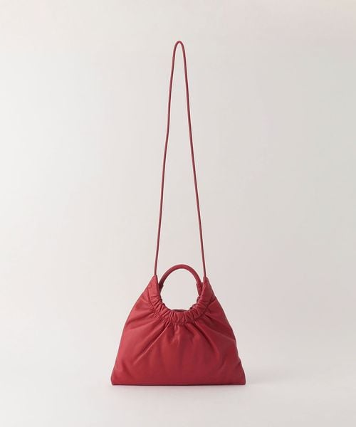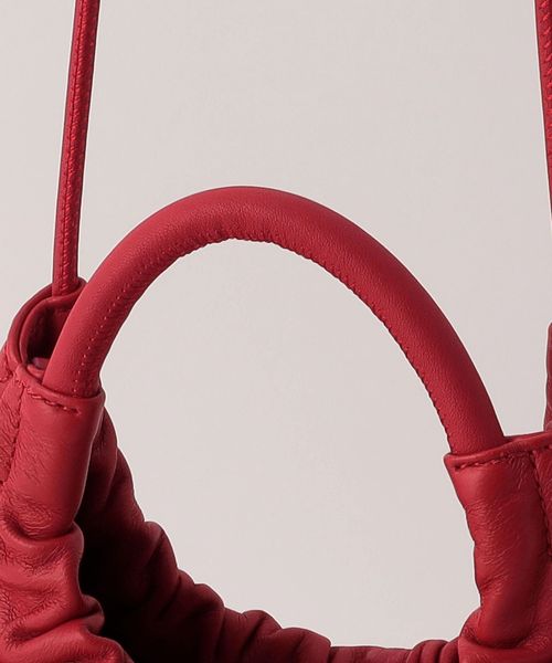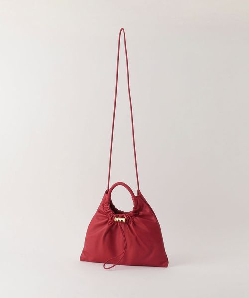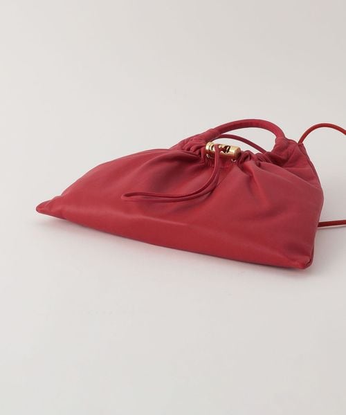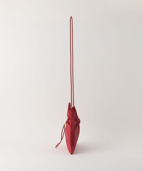 ドロストコードと印象的な形が特徴のショルダーバッグ。