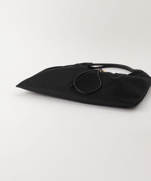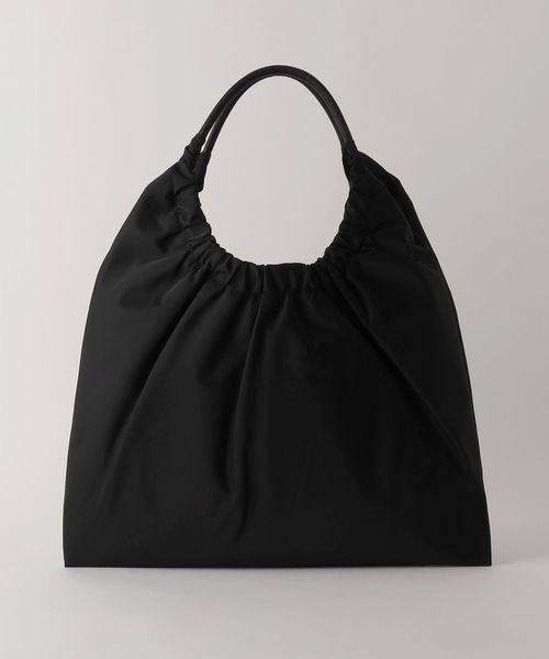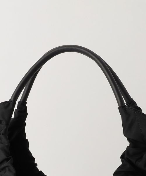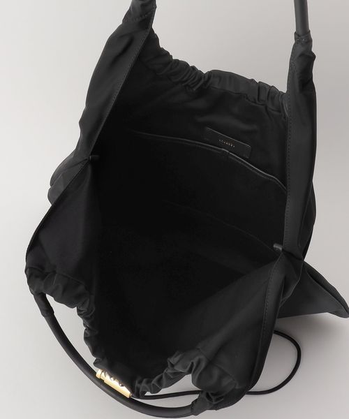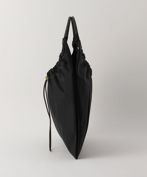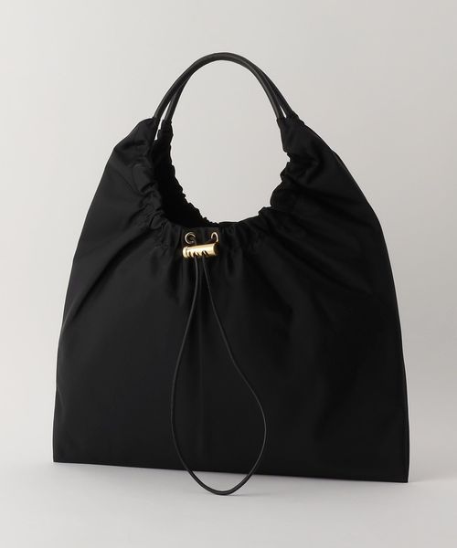 ドロストコードと印象的な形が特徴のショルダーバッグ。