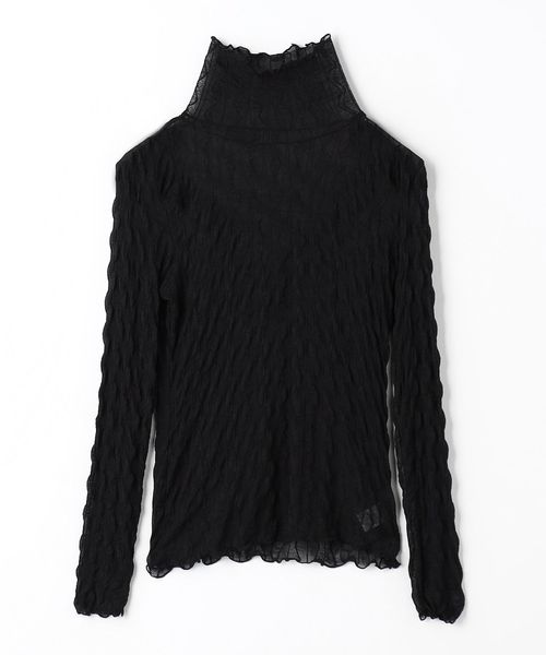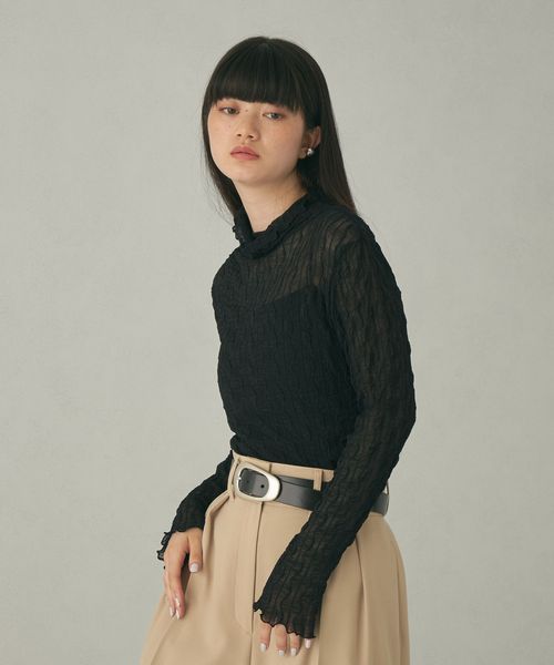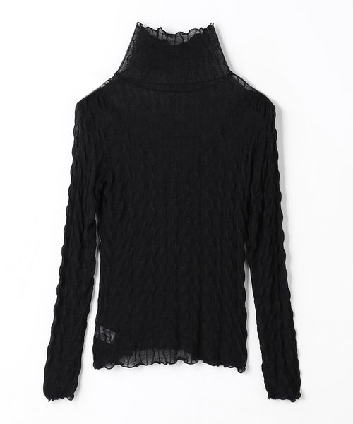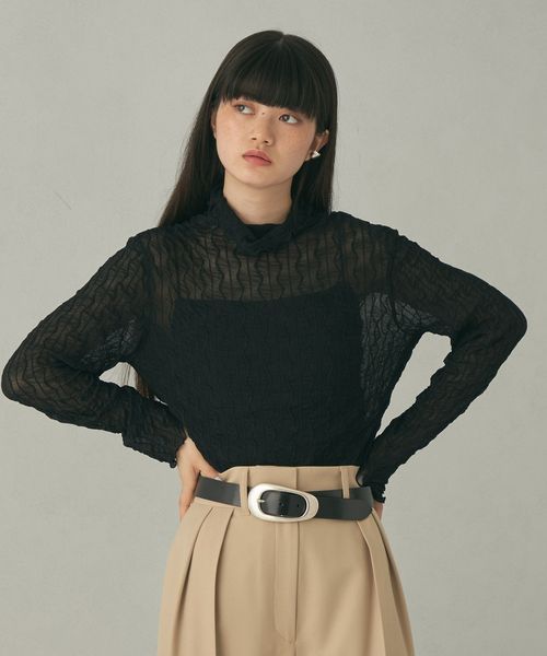 ジャンスカやサロペットなどのインナーとして重宝する、シアー素材のタートルネックのカットソー。