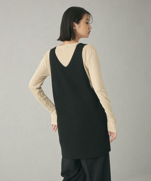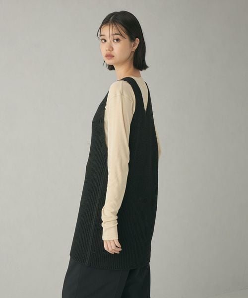まだ暑い時期から、シャツやロンTに合わせてレイヤードスタイルが楽しめるニットタンクトップ。