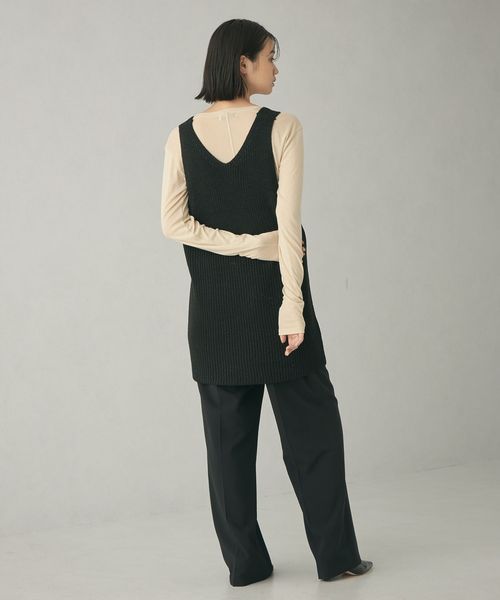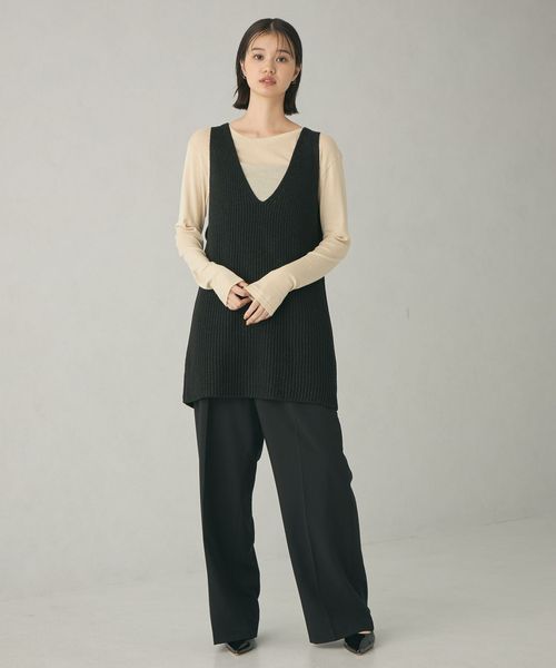 シャツや薄手のニット、カットソーと重ねて、パンツ合わせのモードなスタイリングがおすすめです。