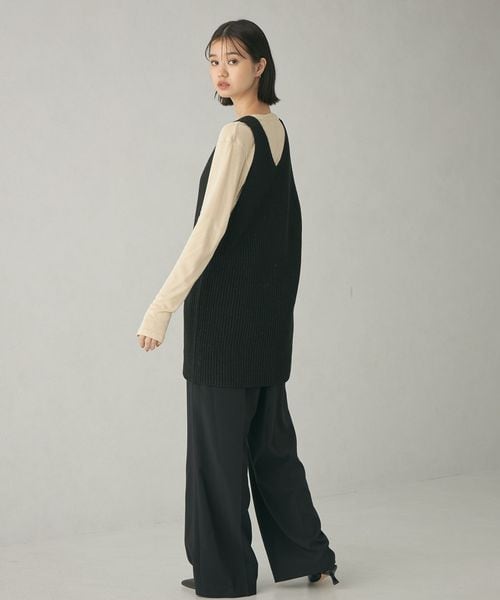 シャープな印象の深めのVネックで、ラメ糸をMIXした素材もフェミニンになりすぎずに着ていただけます。