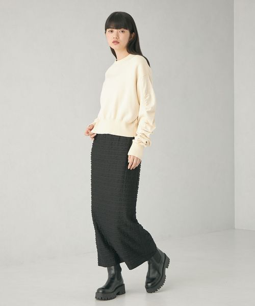 ミニフリルが表面に表情のあるカットソー素材。