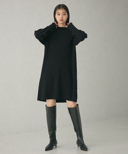 ボトルネックがポイントのリブ編みのニットワンピース。