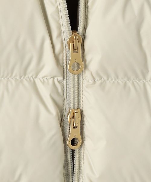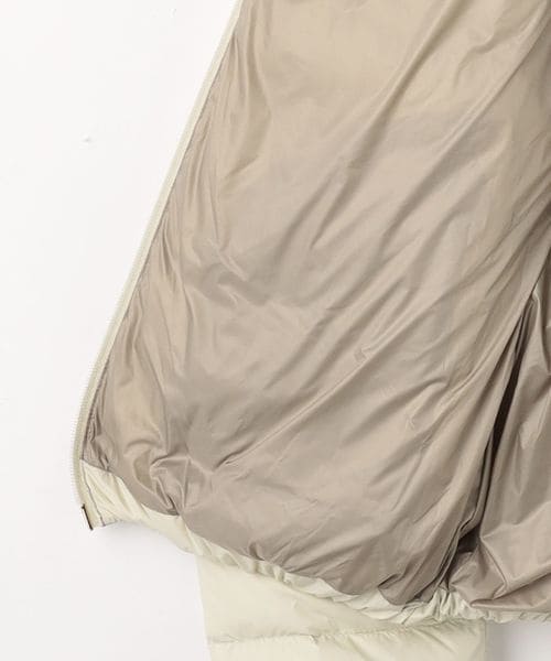 表素材をシルクライクなしっとり感のある優しい肌ざわりのマットナイロン、表地と裏地の配色が絶妙にマッチし、ミニマル&スポーティーなスタイルを演出したショート丈フーデッドダウンジャケットです。