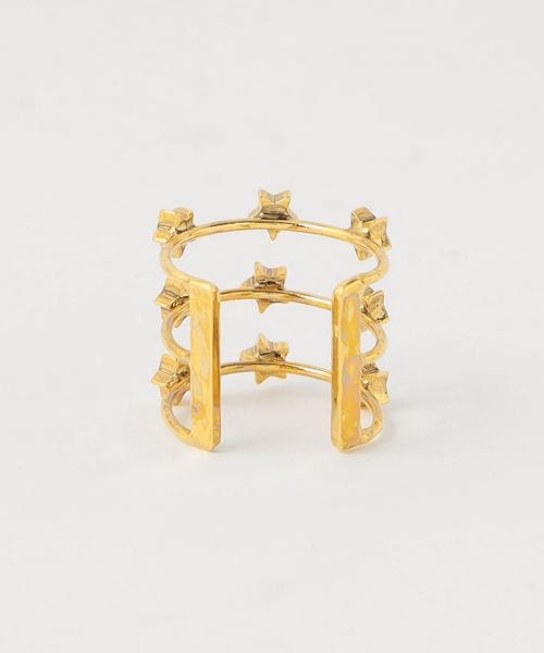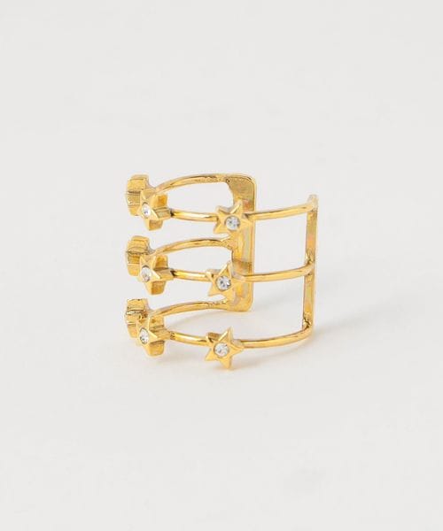 夜空に点々と光る星のようにモチーフをちりばめた3連のように見えるリングは抜け感がある繊細な印象で手元をエレガントに演出してくれます。