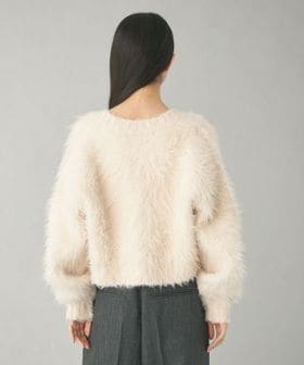 ふわふわの毛足とフェミニンなカラーがポイントのカーディガン