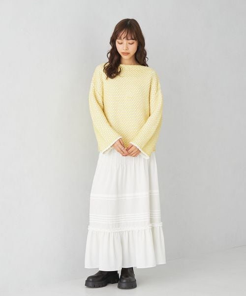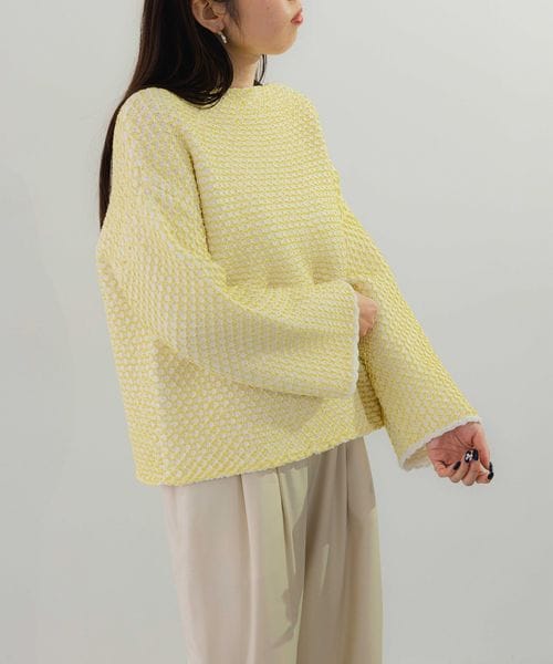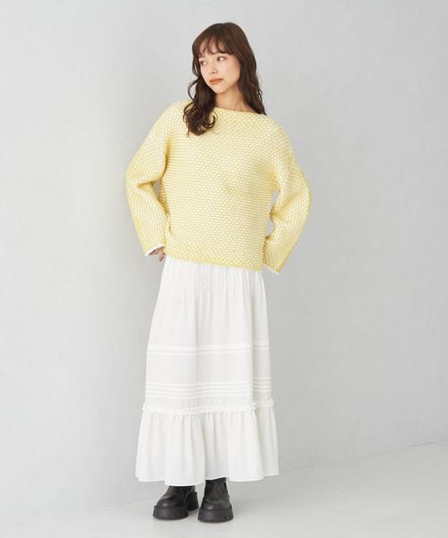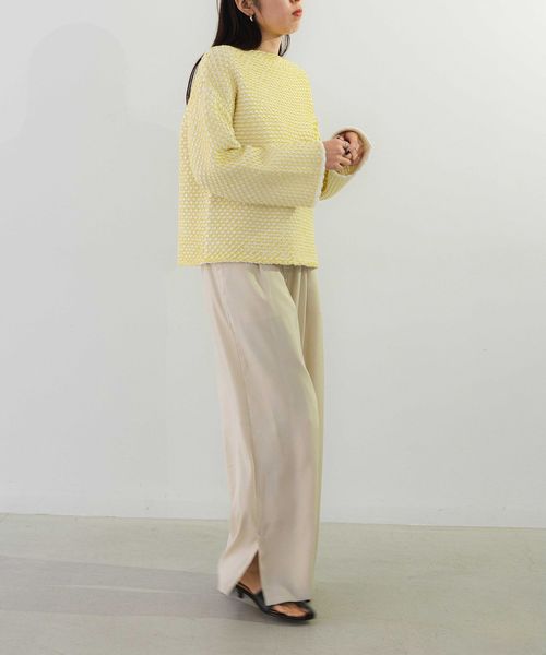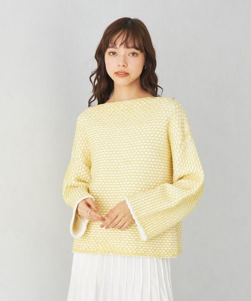 MIX感のある糸のジャカード編みが着映えするスプリングニット