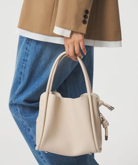 ソフトな素材でも自立する、コンパクトなサイズがうれしいショルダー付きトートバッグ