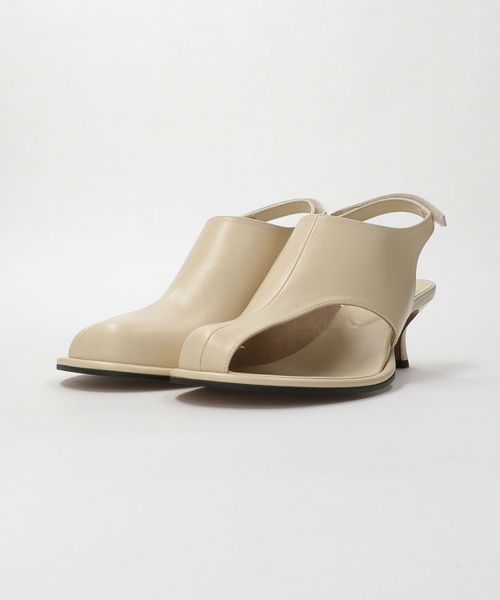 カッティングデザインとニュアンスのあるカラーでトレンド感のある足元を演出してくれるバックベルトタイプのミュールサンダル。
