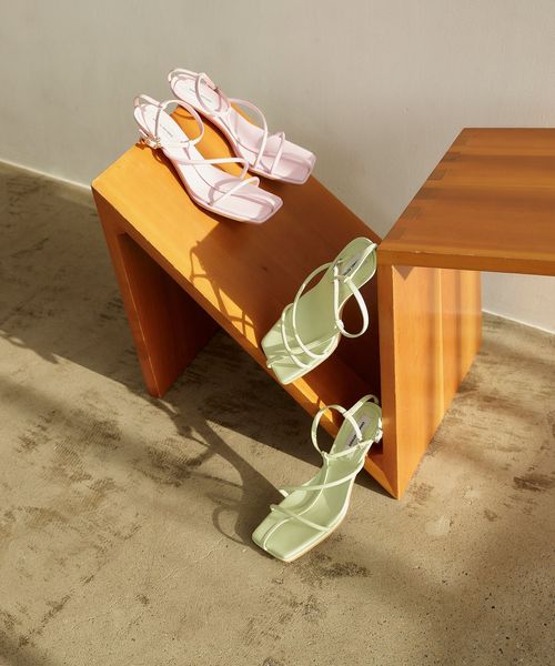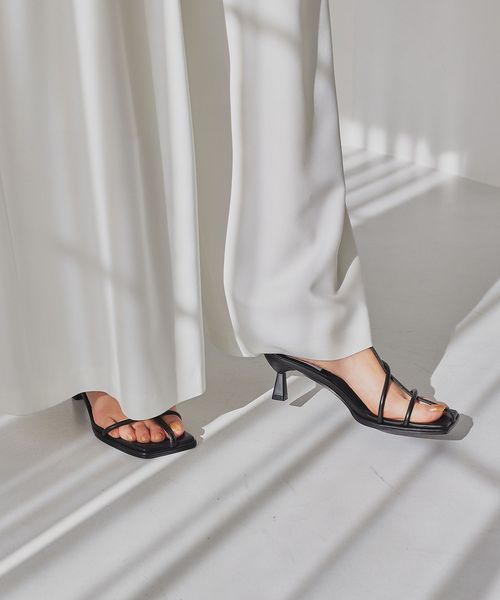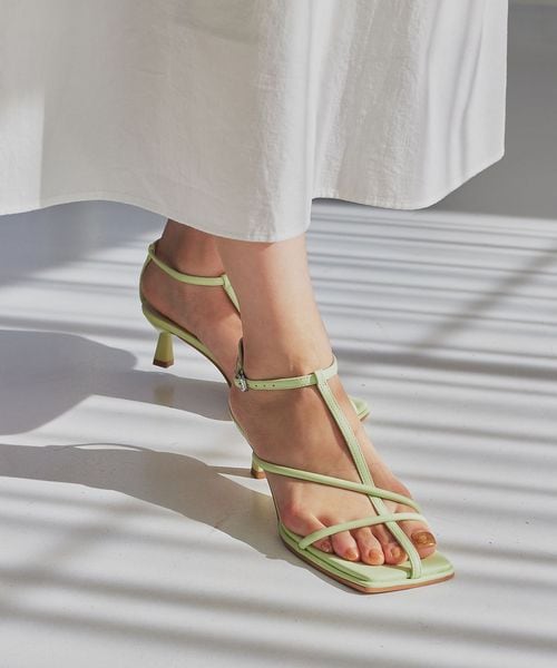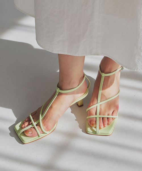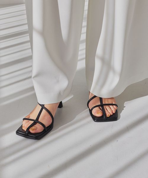 華奢なストラップ使いで繊細かつ印象的な足元を演出してくれるヒールサンダル