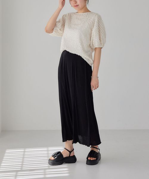 とろみのあるカットソー生地で派手過ぎず、着やすいのも魅力。