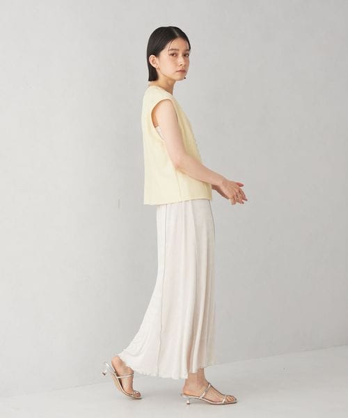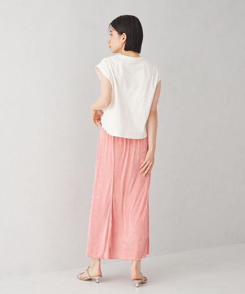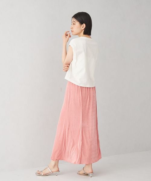 シンプルにTシャツやカットソー合わせがおすすめ。華奢なサンダル合わせはもちろん、カジュアルにスニーカー合わせも◎です。