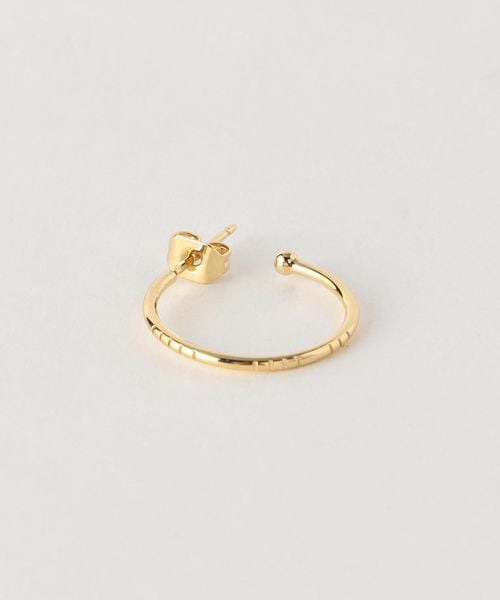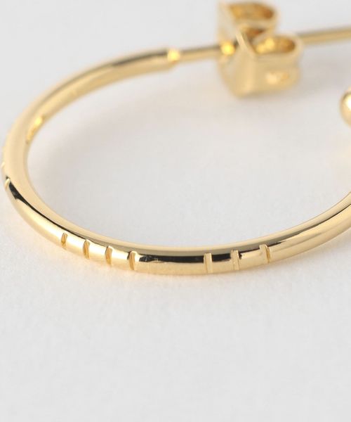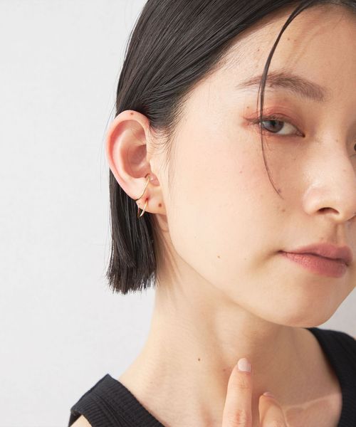 片耳はシンプルなフープピアス。もう片方はピアスとイヤーカフを組み合わせたような、フープが連なるアシンメトリーなデザインのピアスです。
