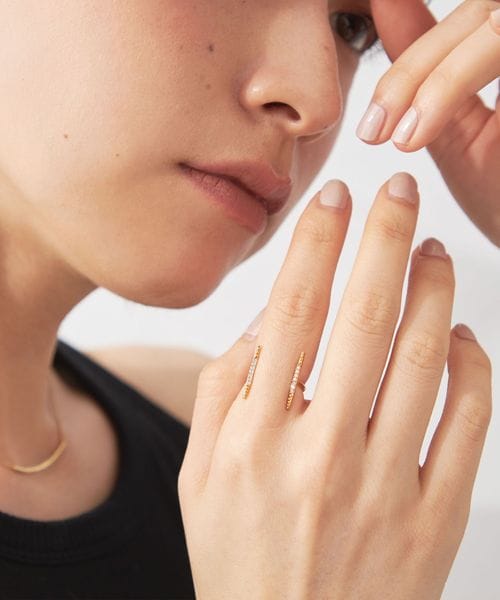 単品使いでも存在感がありますが、お手持ちのリングと組み合わせて身に着けていただいても◎です。