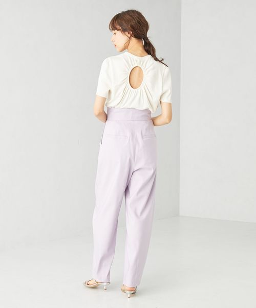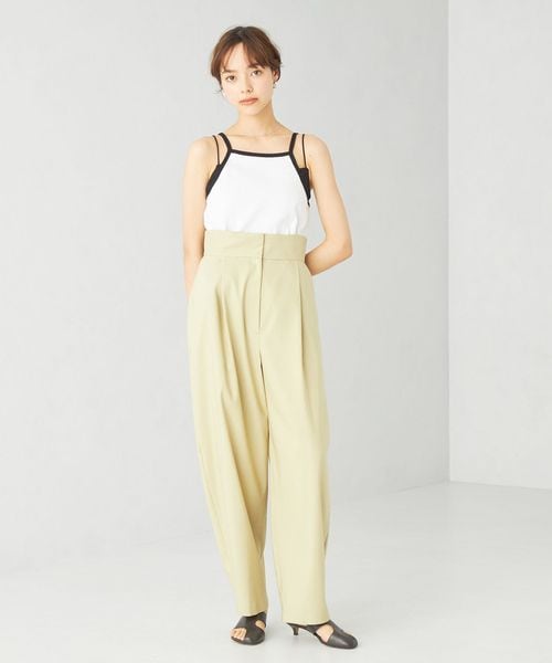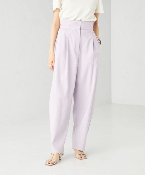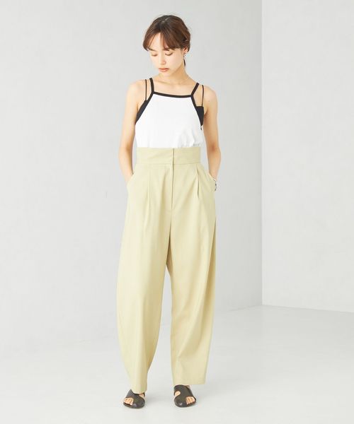 カジュアルな印象になりがちなコクーンパンツをハイウエストデザインにする事で、フェミニンアイテムとも相性が良いシルエットに仕上げました。