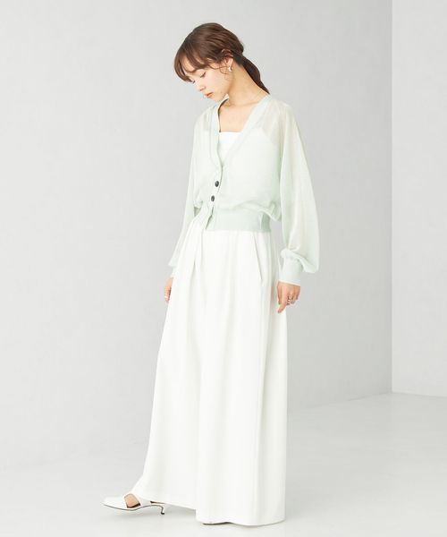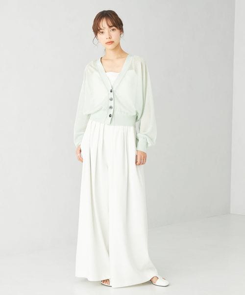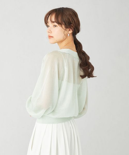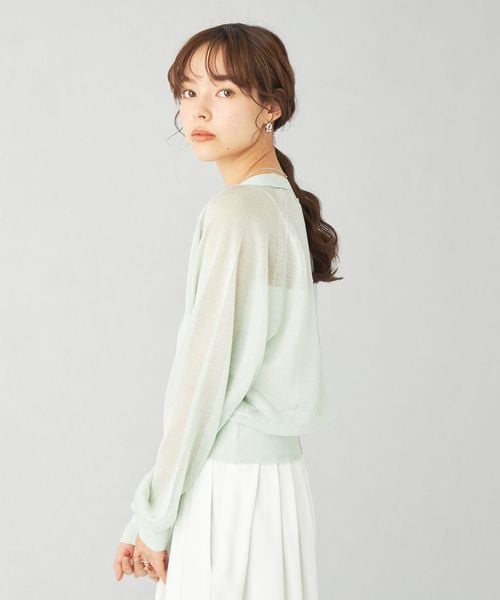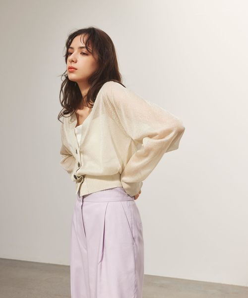夏まで着やすいシアーカーディガンを今年はさりげなくラメの光沢感を効かせてアップデート