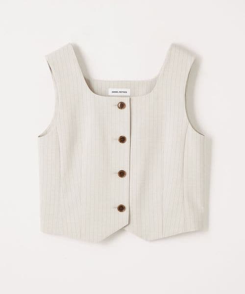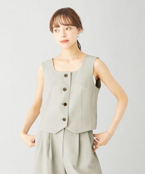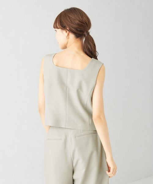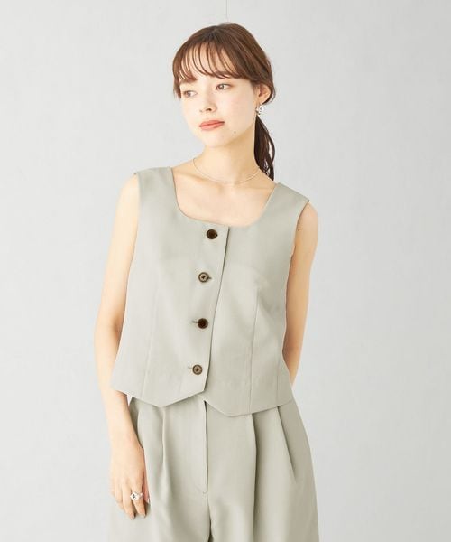 一枚でさらっと着るのが可愛いスクエアネックとボタンがポイント