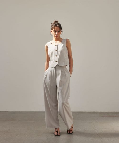 同素材のパンツとセットアップスタイルはもちろん、ボリュームのあるスカートとのコーディネートも◎