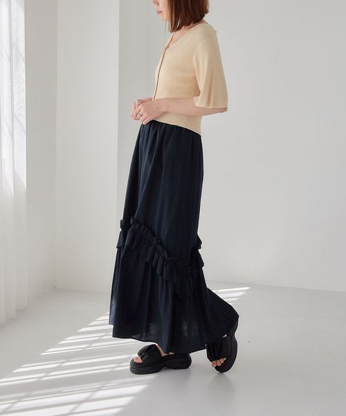 デニム合わせはもちろん、スカート合わせの夏らしい着こなしもおすすめ。