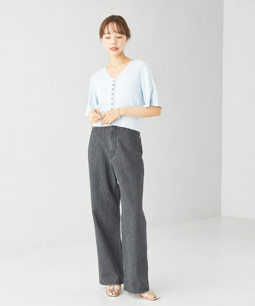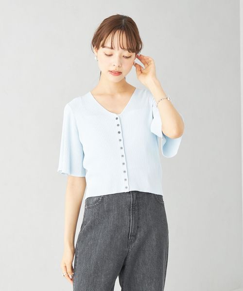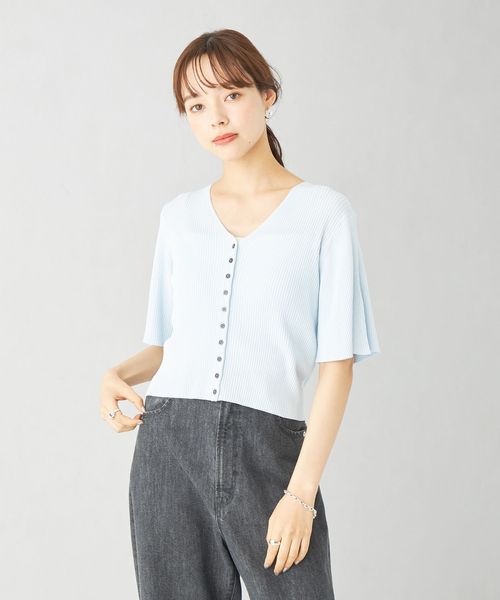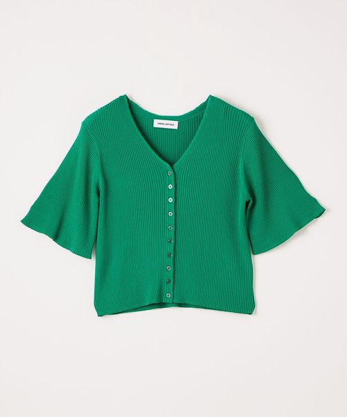 <EMMEL REFINES>EM リブショートスリーブ Vネック カーディガン