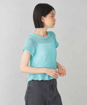 ローゲージのメッシュ風の編地が涼やかな印象。