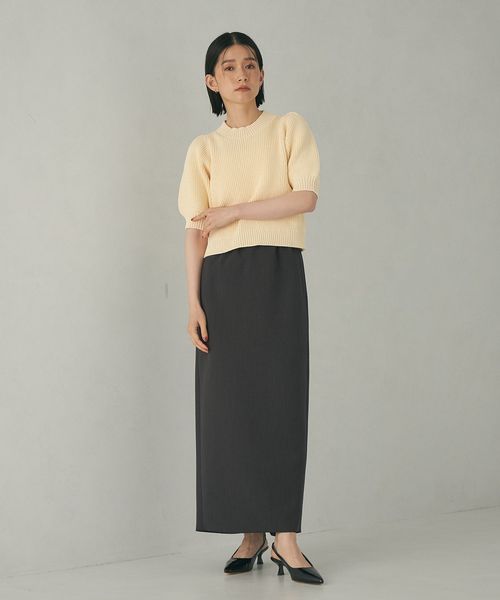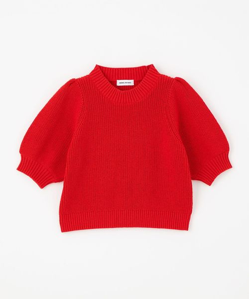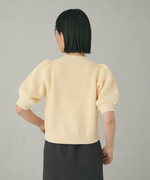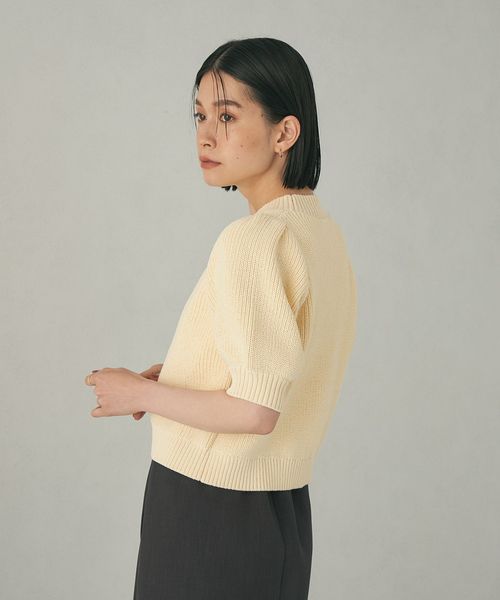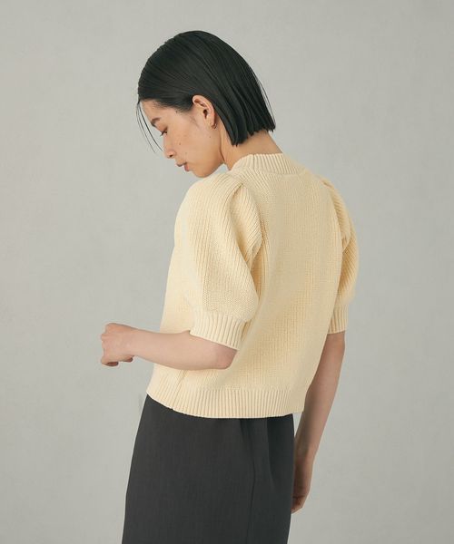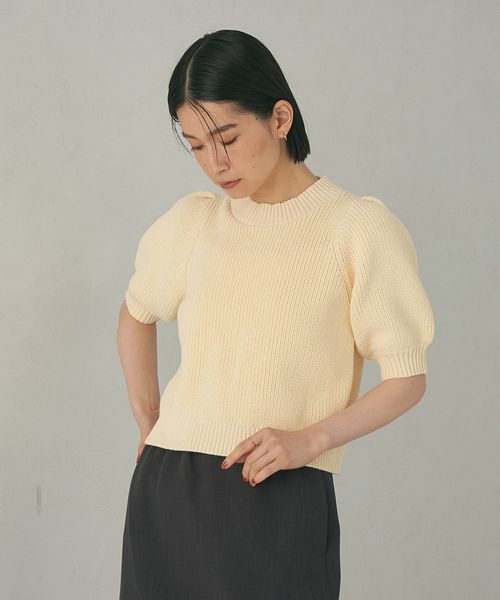 少しパフスリーブになっているショートスリーブとコンパクトな着丈のバランスが可愛らしいニットプルオーバー。