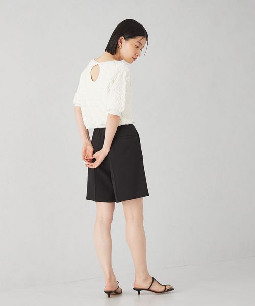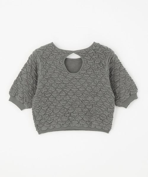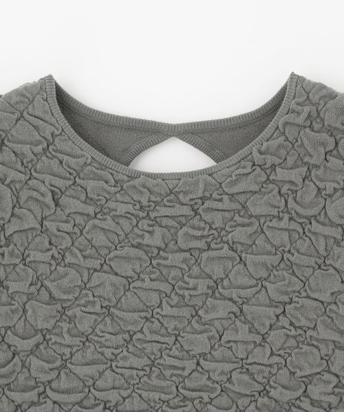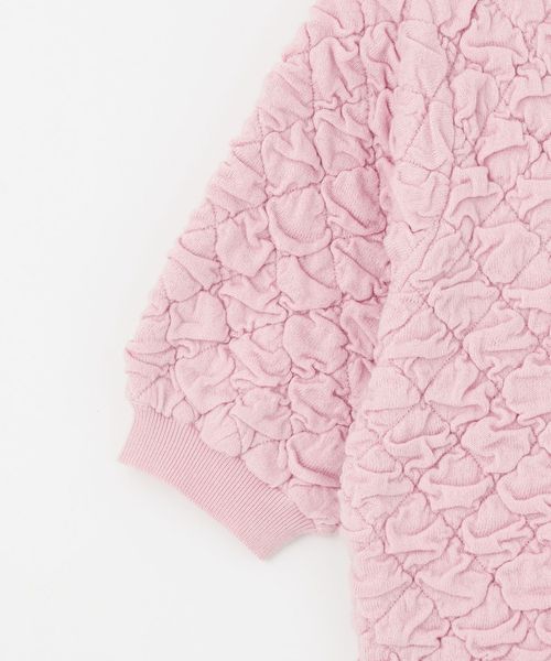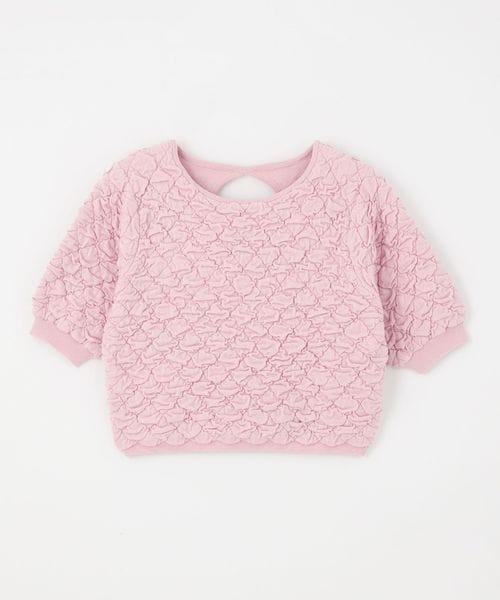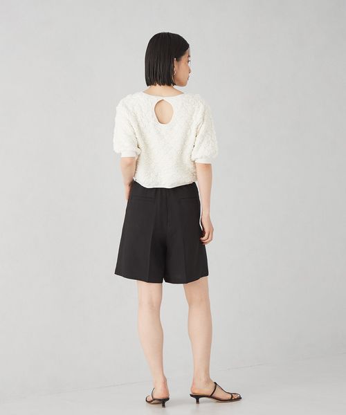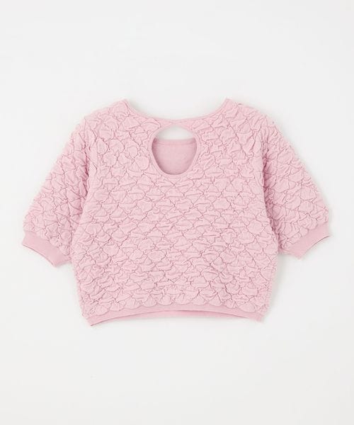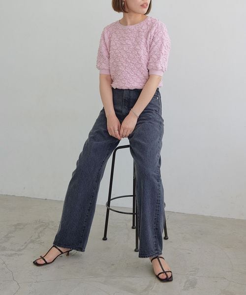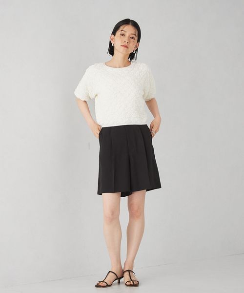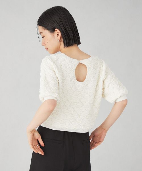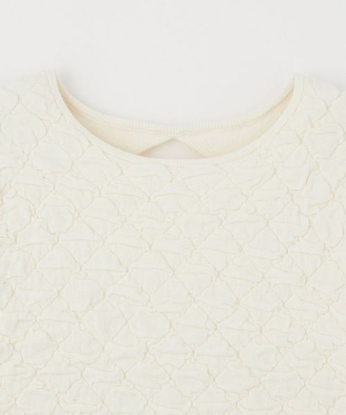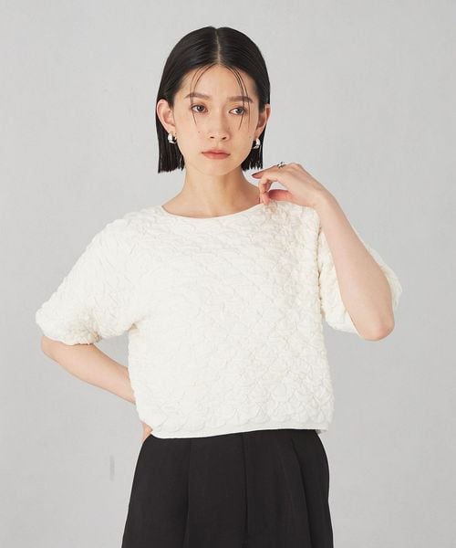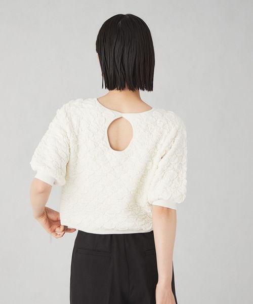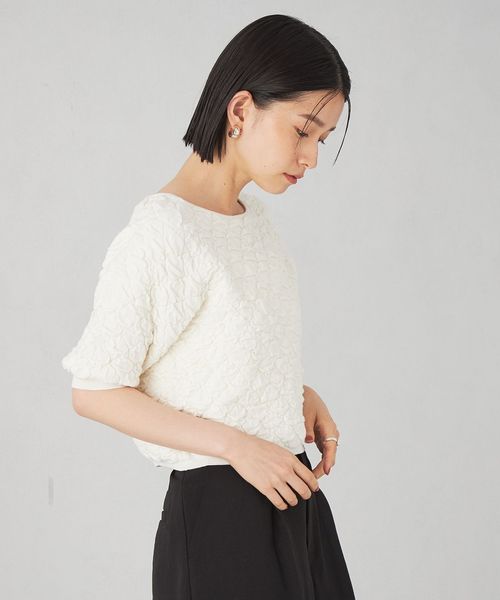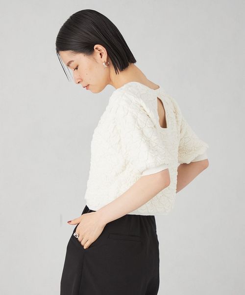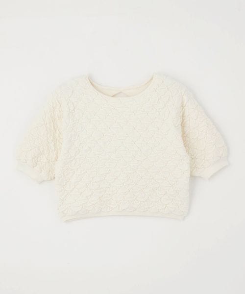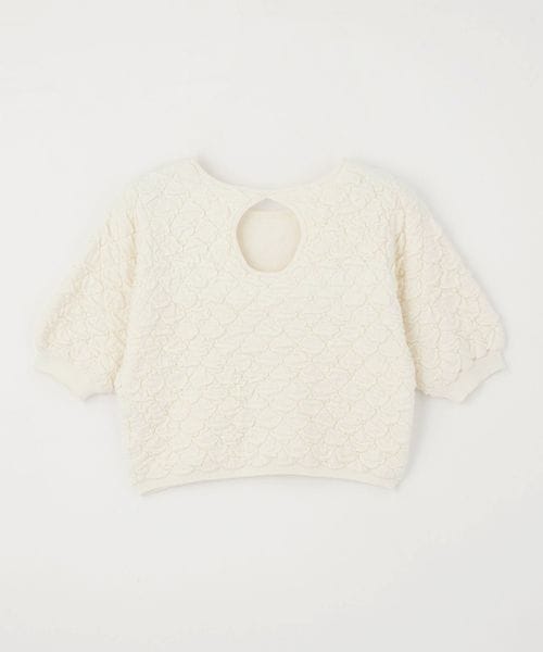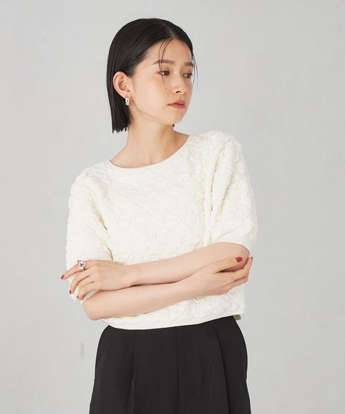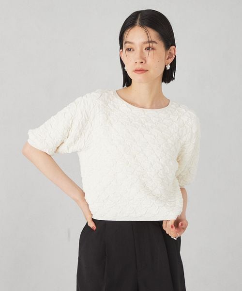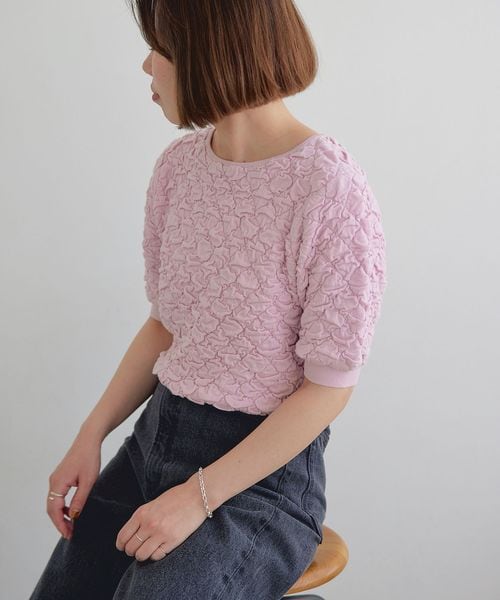ぽこぽことした編地が可愛らしいニットトップス。編地に特徴があるので、形は着まわしやすいミニマルなバランスで仕上げました。