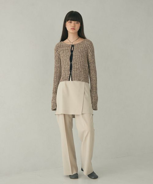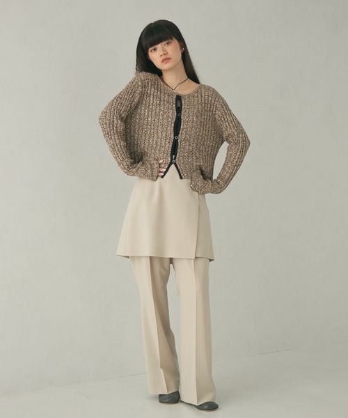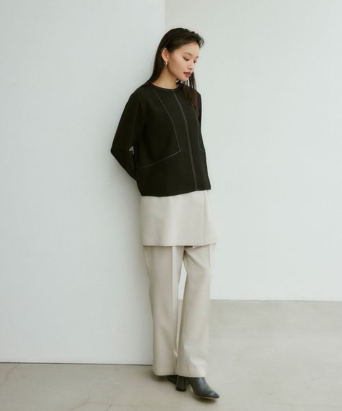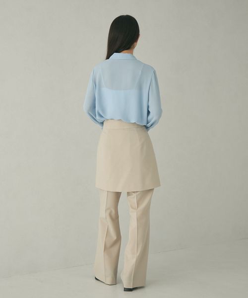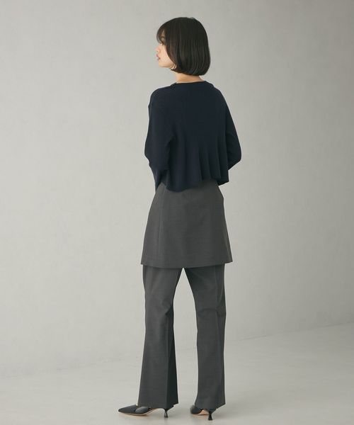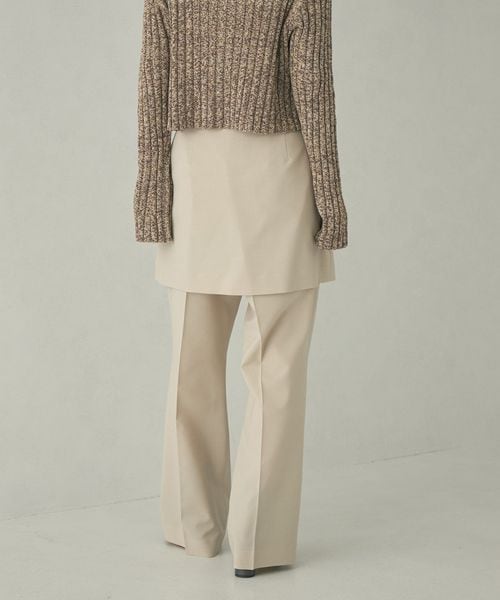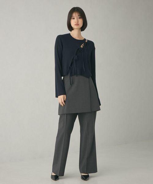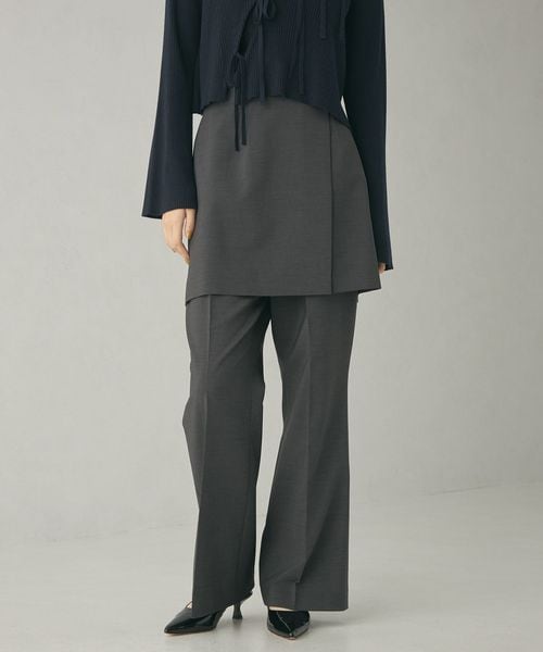 脚のラインをきれいにみせてくれるフレアシルエットで、ラップスカートとのバランスにもこだわったラインに仕上げています。