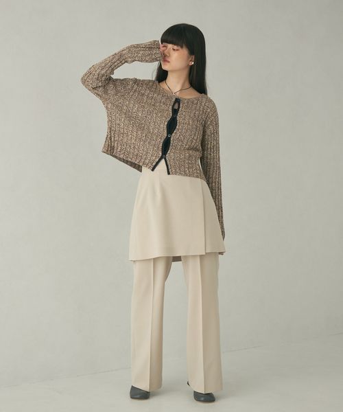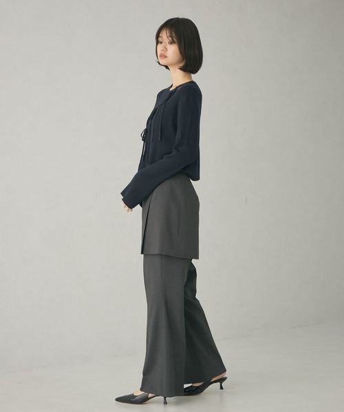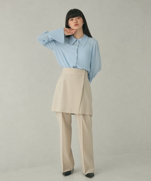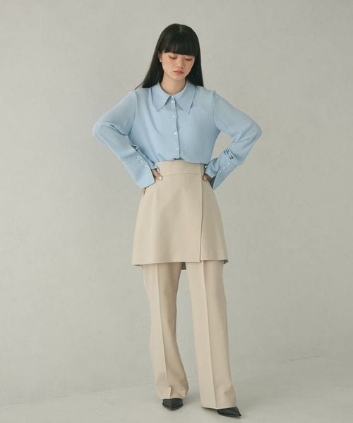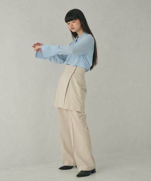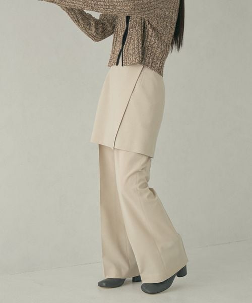 トレンド感のある着こなしが楽しめるラップスカートとフレアパンツのセット