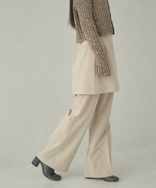 トレンドのレイヤードボトムの着こなしが簡単に楽しめる、スカートとパンツのセット。
