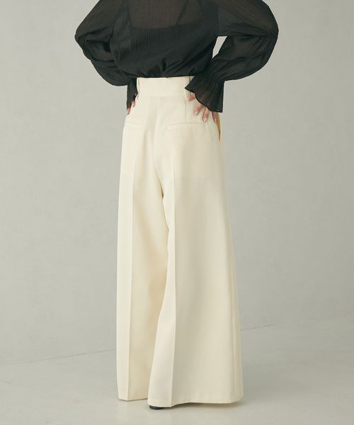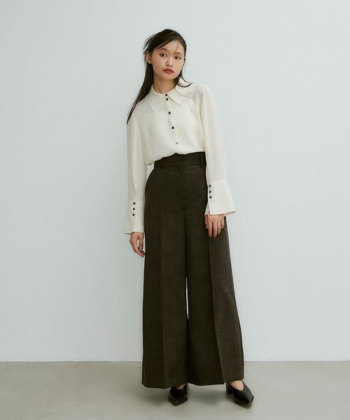 カジュアルなイメージのコーデュロイパンツを、ハイウエストでややフレア感の出るワイドシルエットに。