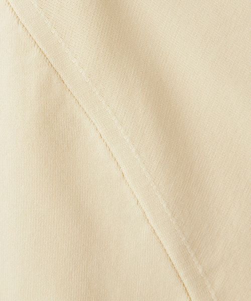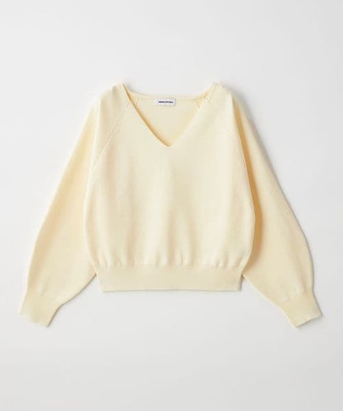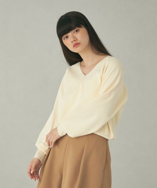 Vネックの首元にはリブを付けずにすっきりとさせることでクリーンな雰囲気に仕上げています。