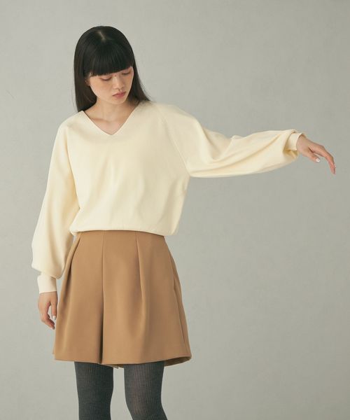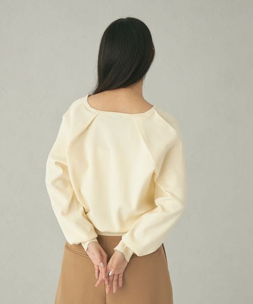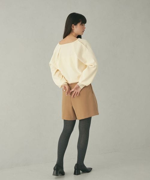 程よくゆとりのあるシルエットとコンパクトな丈感のバランスに、肩と背中のタックでぽこっと立体感のあるフォルムに仕上げたニットプルオーバー。