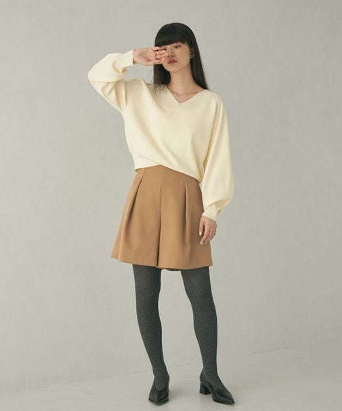 オンオフ着回しに便利なオフボディシルエットのVネックニット