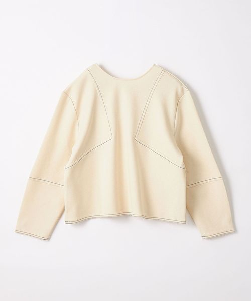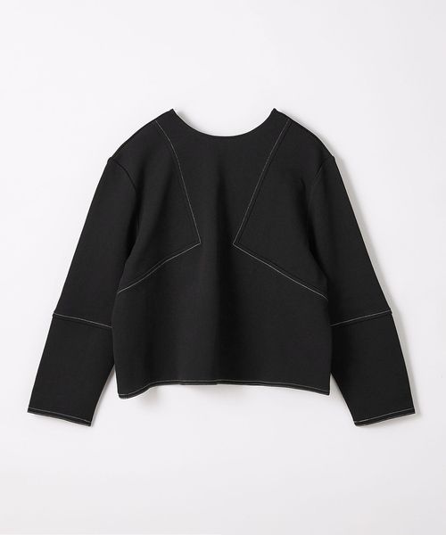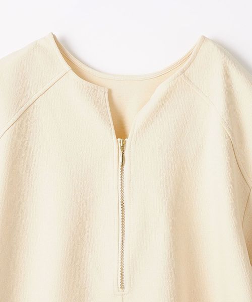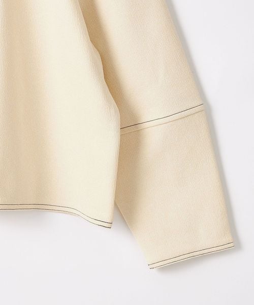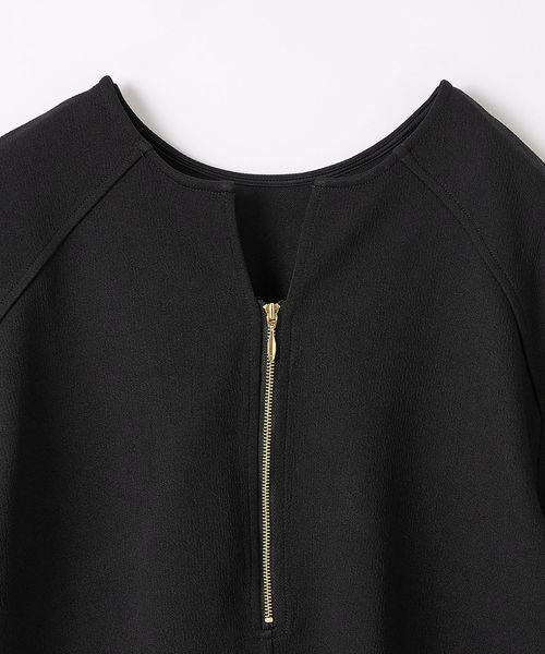 配色のステッチとアクセサリー感覚で着られるジップ使いがポイントのブラウス。