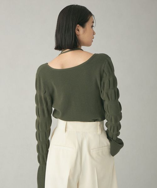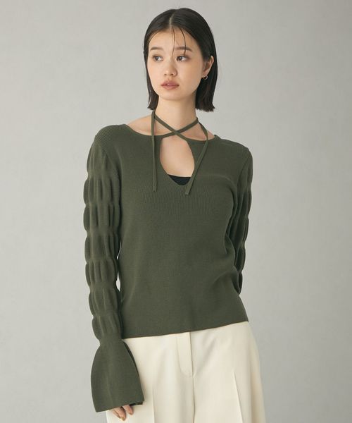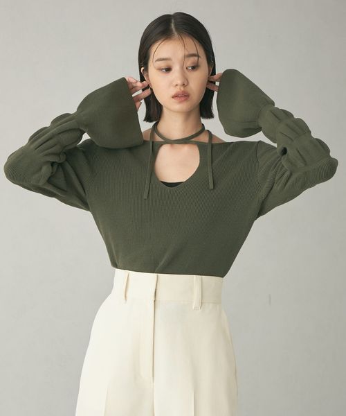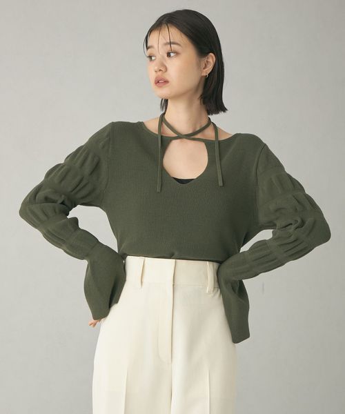 <EMMEL REFINES>EM デザインソデ リボン2WAY ニットプルオーバー