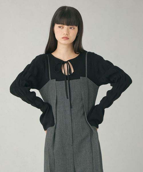 襟元のリボンは結ぶ垂らすの他に、チョーカーの様にぐるっと首に回して垂らす着こなしもおすすめ。