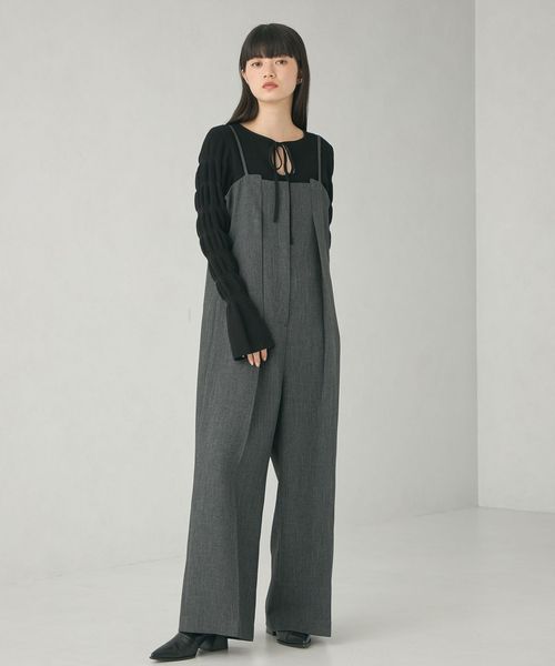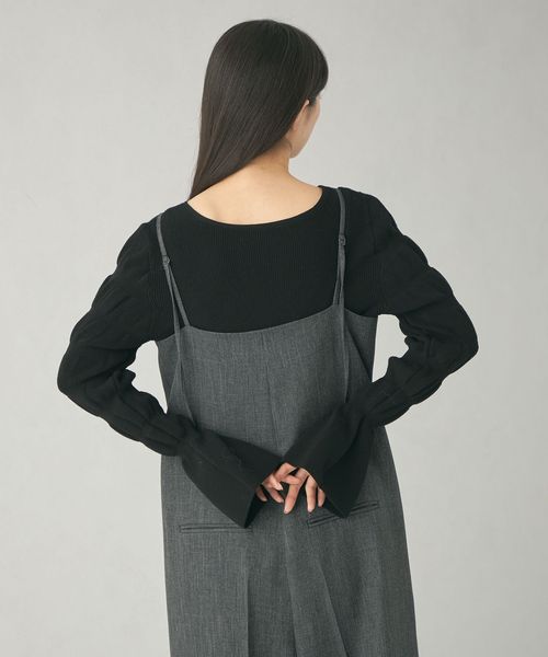 サロペットのインナーとして合わせて袖をポイントに効かせるスタイルもおすすめです。
