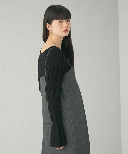 身頃はシンプルに着まわしやすく、段々になった袖のポイントが映えるバランスに仕上げました。