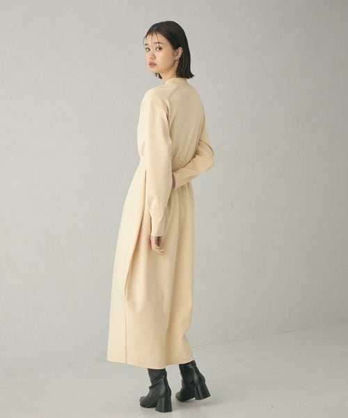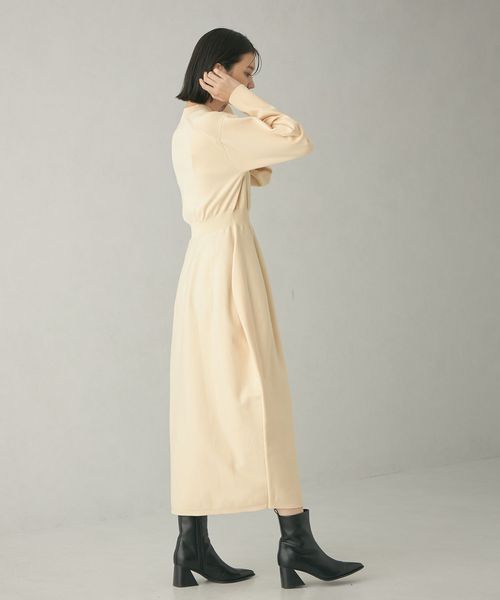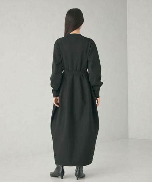 トップス部分は程よくゆるさのあるフォルム、ウエストをきゅっとコンシャスにする事でスカート部分のコクーンシルエットを活かしたバランスに仕上げています。