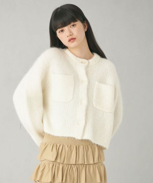 薄手のアウター感覚で着られる、長い毛足がかわいいニットカーディガン。