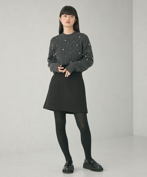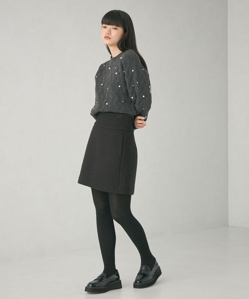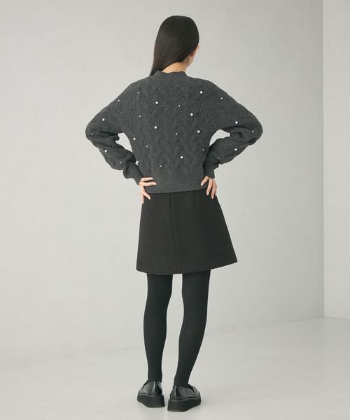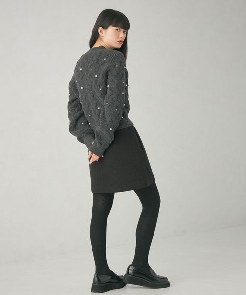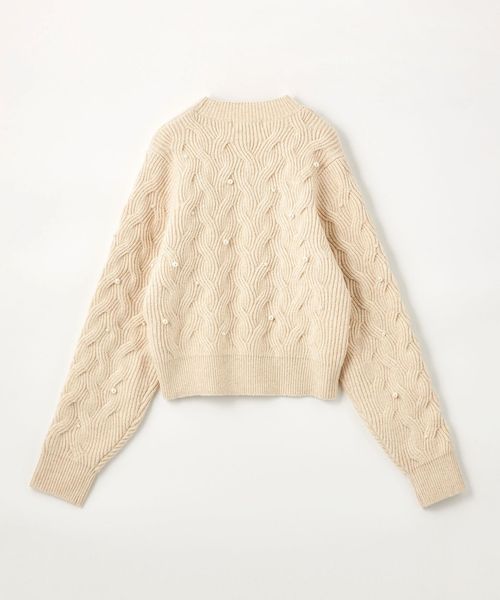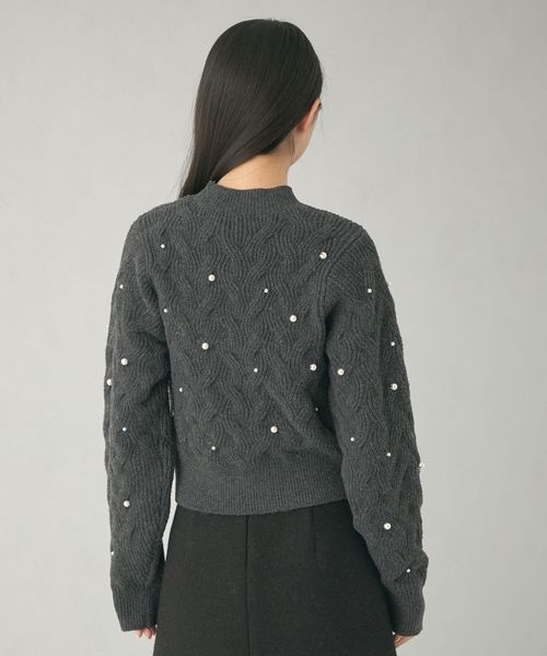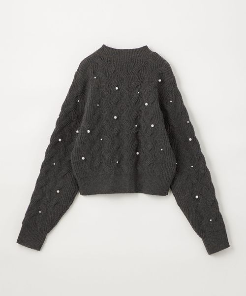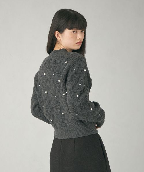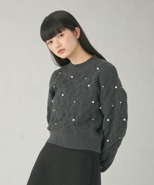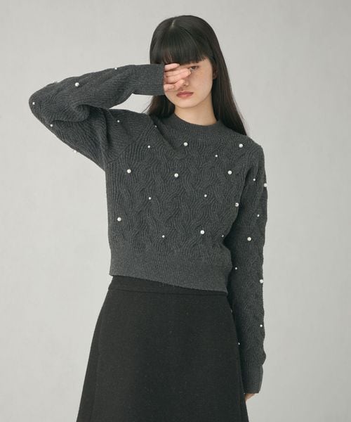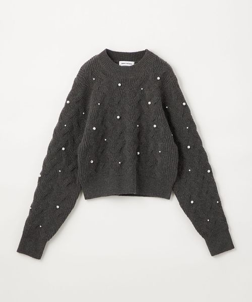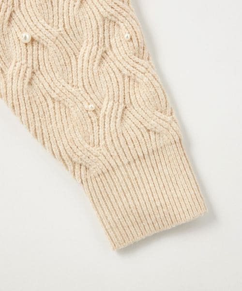 カジュアルな雰囲気の大きめケーブルにランダムにフェイクパールを散りばめ、フェミニンで華やかさのあるデザイン。