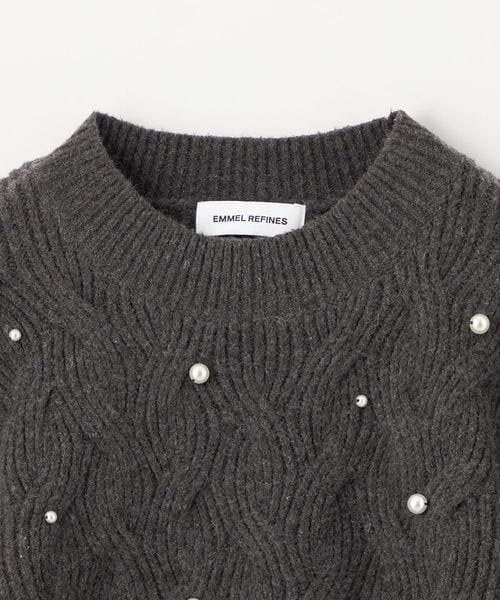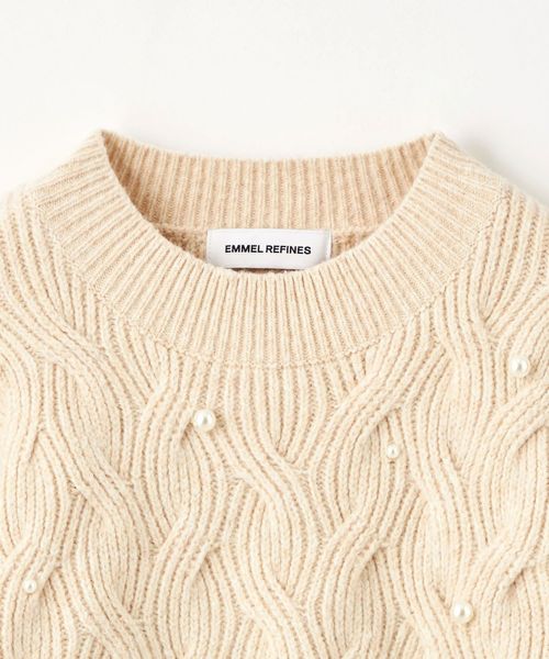<EMMEL REFINES>EM フェイクパール × ケーブル クルーネック ニットプルオーバー