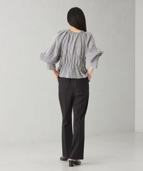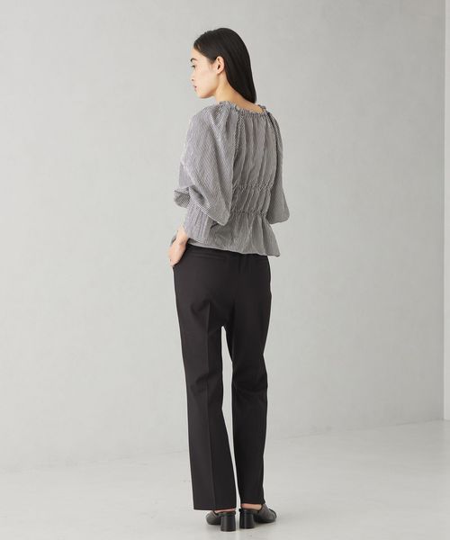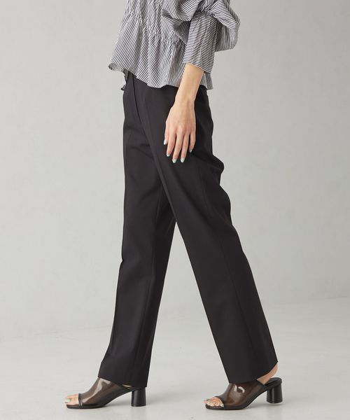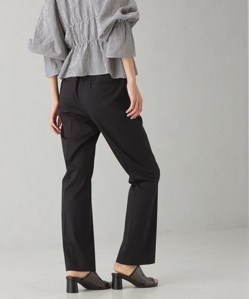 クリーンな素材使いでモードな雰囲気ではいていただけ、ウエスト後ろはゴム仕様なのできちんと見えつつも着心地にもこだわった一枚です。