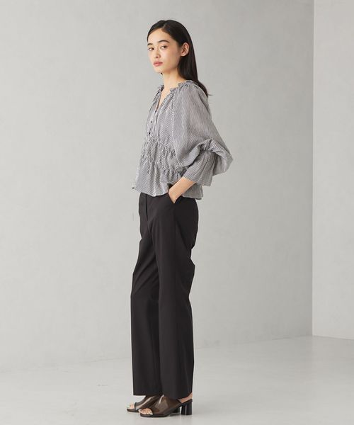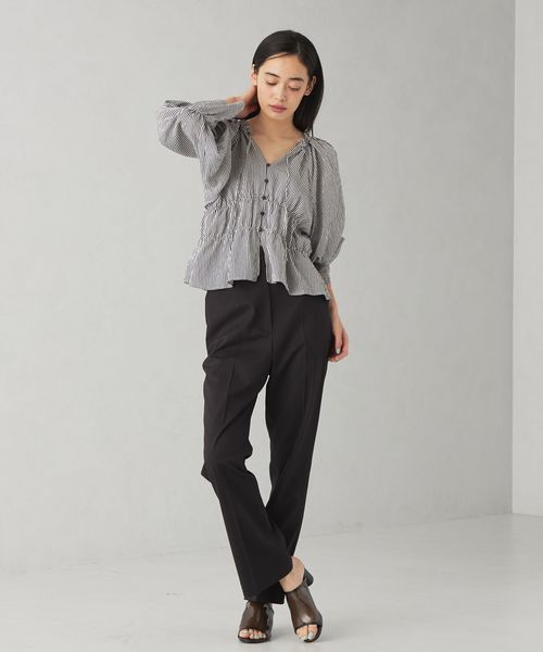 フェミニンなブラウスや、ロング丈のトップスとのコーディネートから、ハイウエストで仕上げているのでショート丈トップスとも好相性。